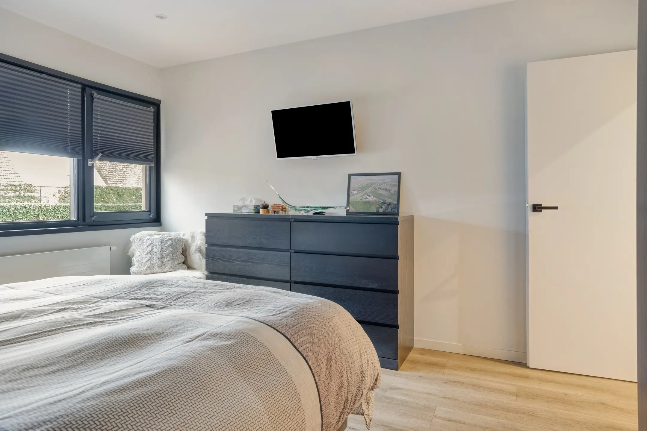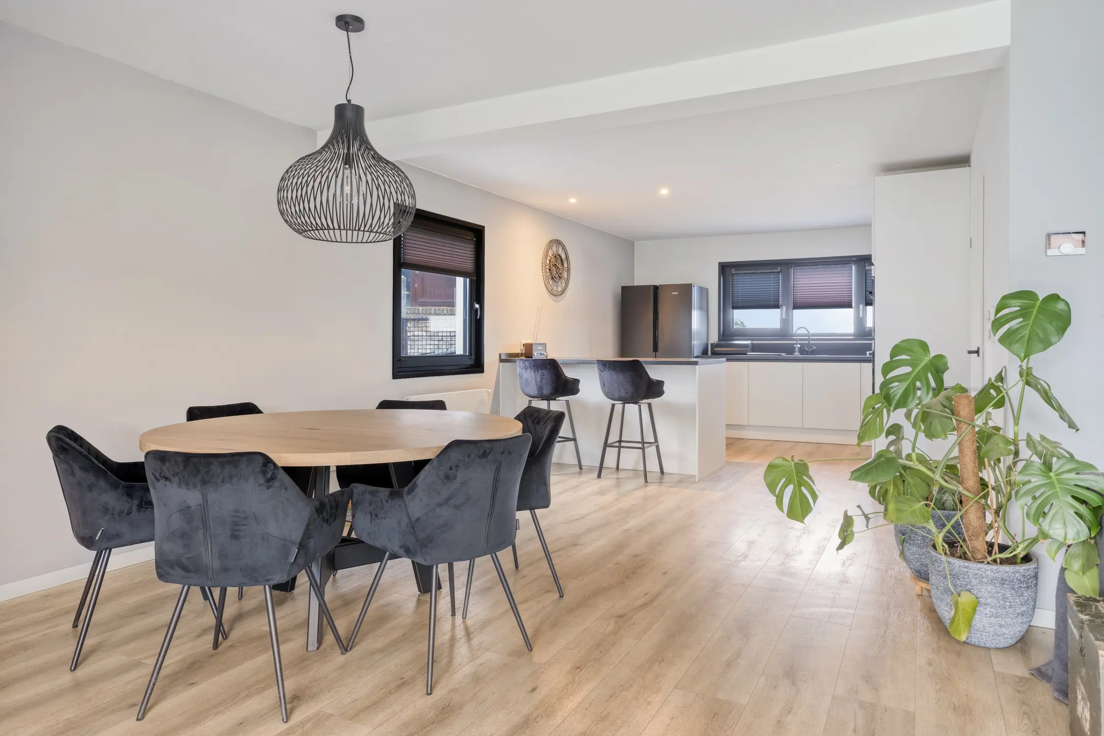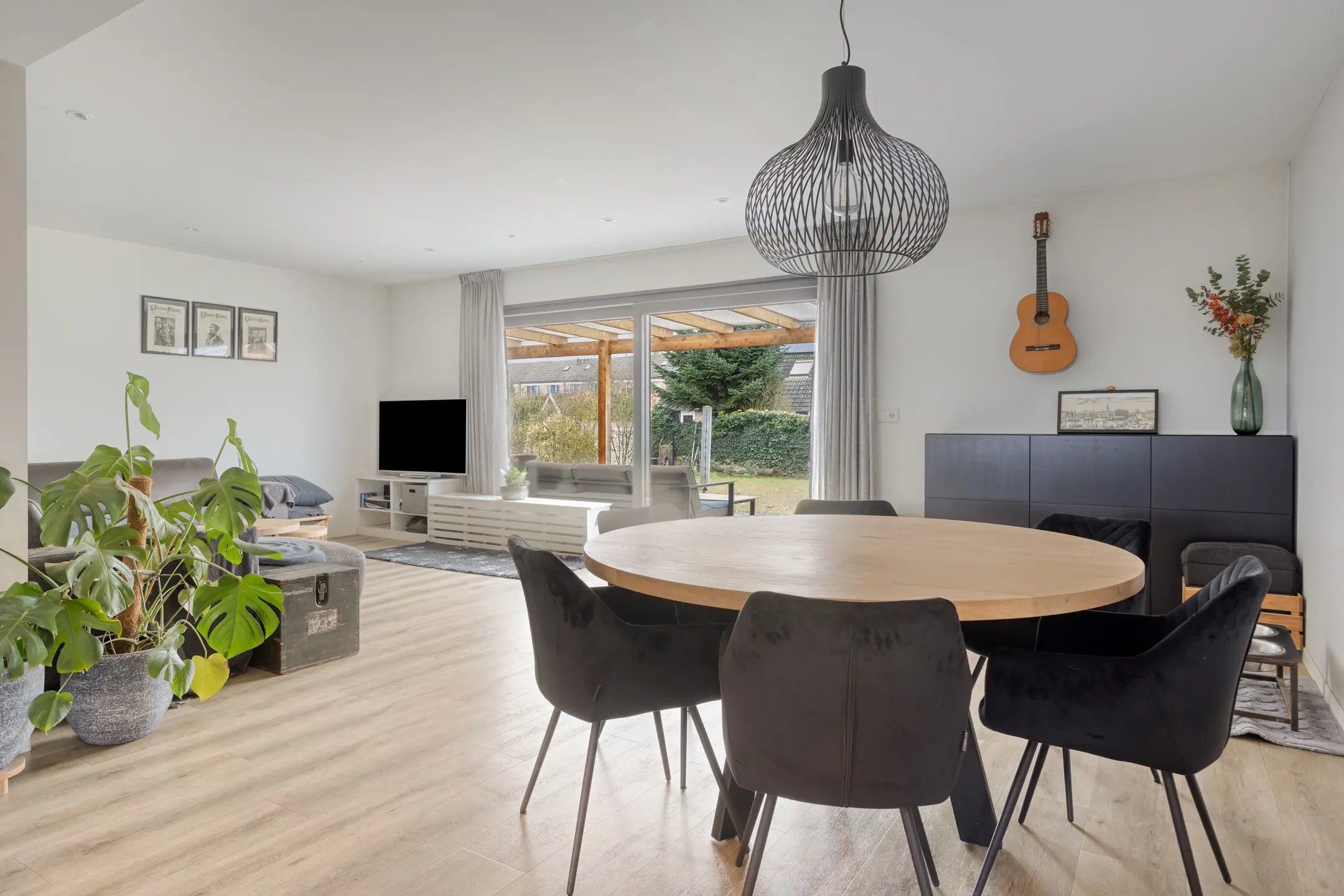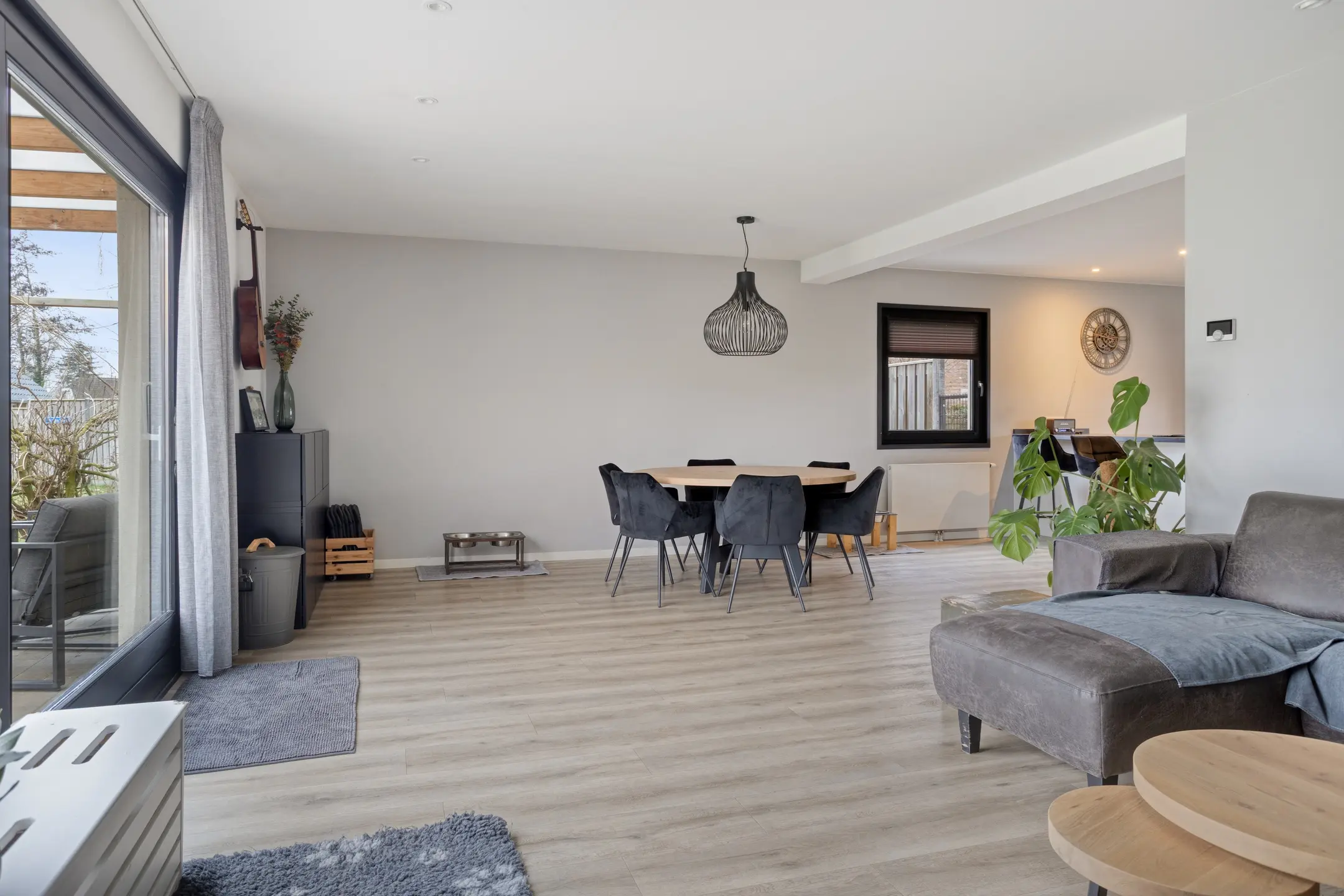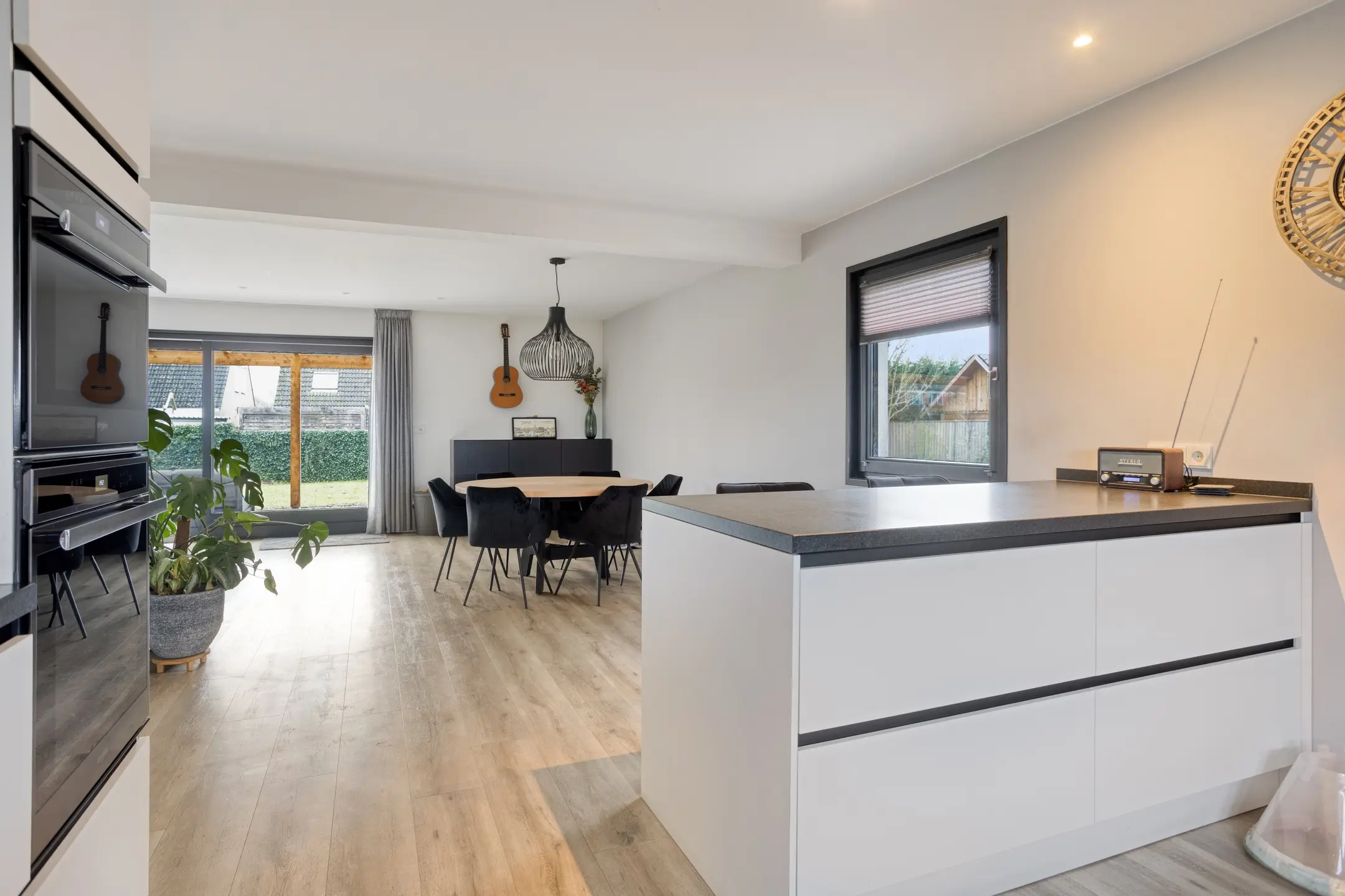 • De living: Een lichte, royale woonkamer met een directe verbinding naar de open keuken. Dankzij de schuifpui aan de achterzijde loopt binnen naadloos over in het buitenleven op het overdekte terras.