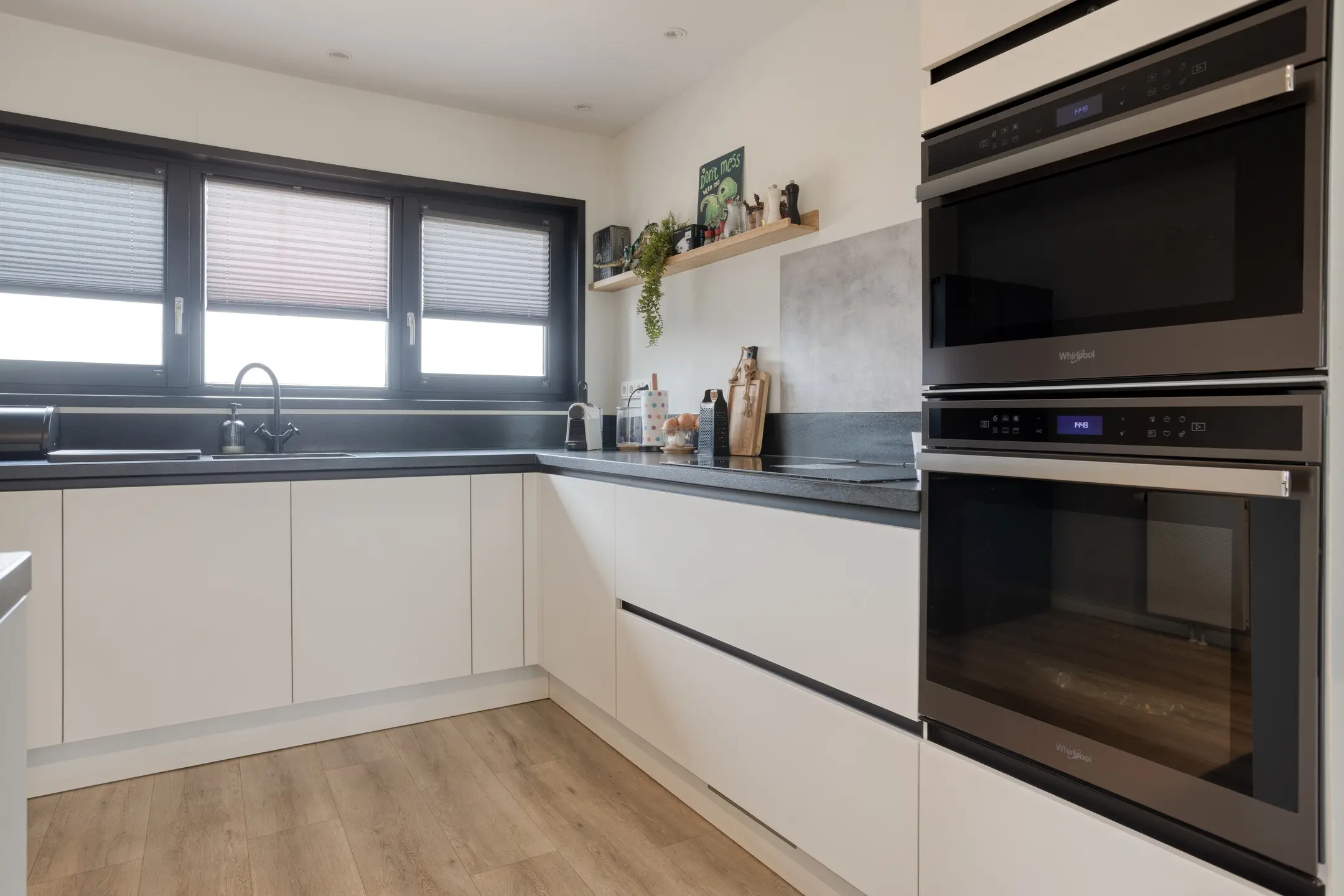 • De keuken: Een moderne L-opstelling mét eiland, voorzien van alle gemakken (inductie, combi-oven, oven en vaatwasser). Tijdens het koken geniet u van een weids uitzicht over het landschap.