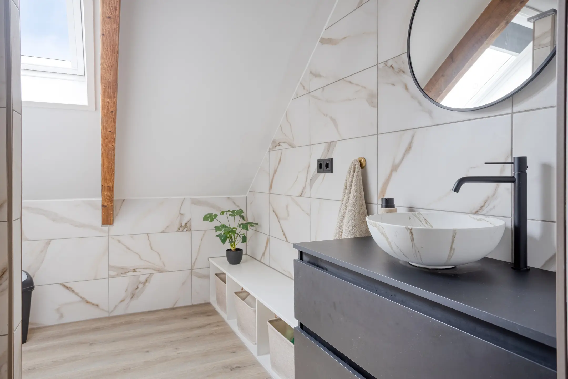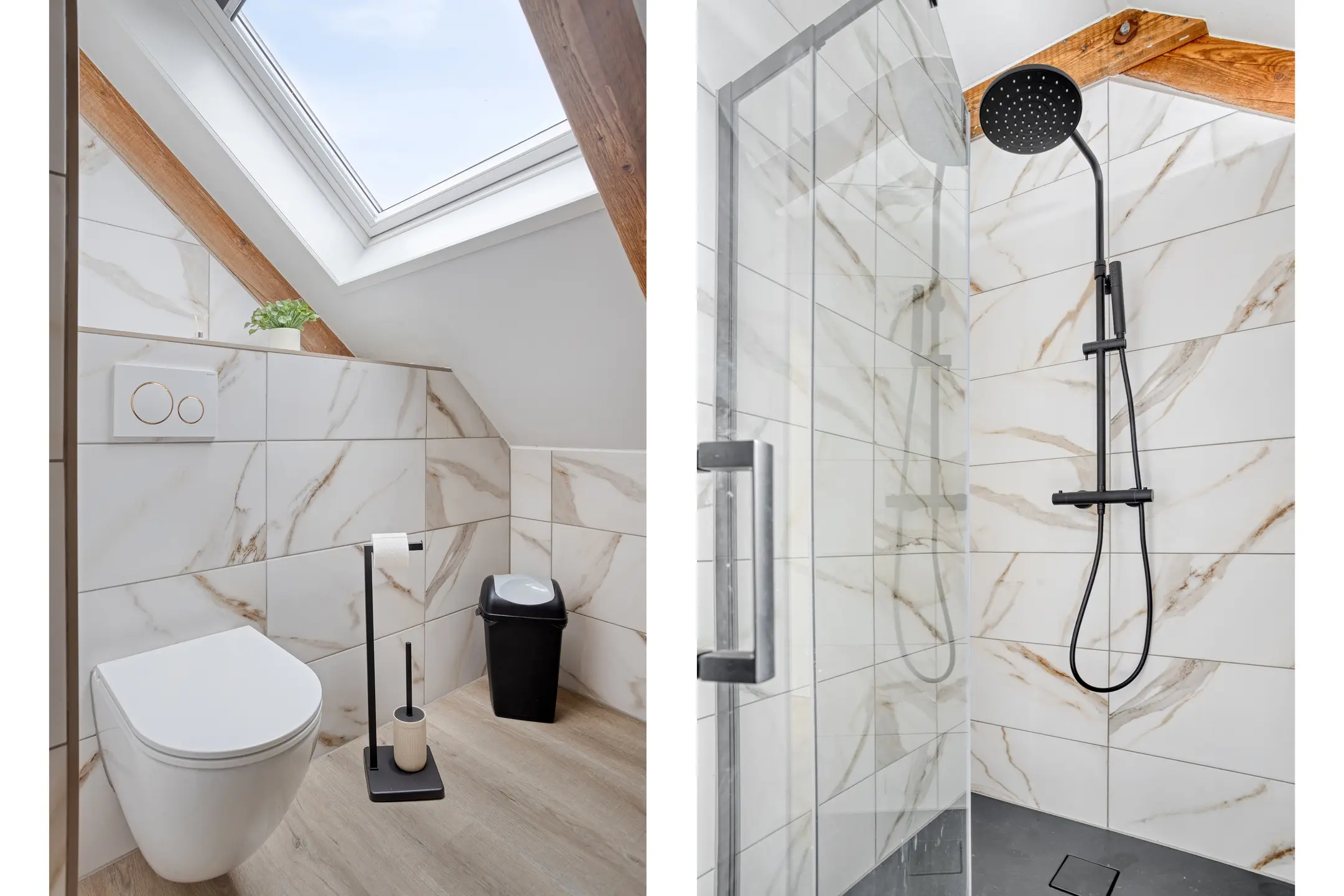 • De tweede badkamer op deze verdieping doet niet onder voor de eerste: ook hier vindt u een inloopdouche, een tweede toilet en een dubbel wastafelmeubel.
