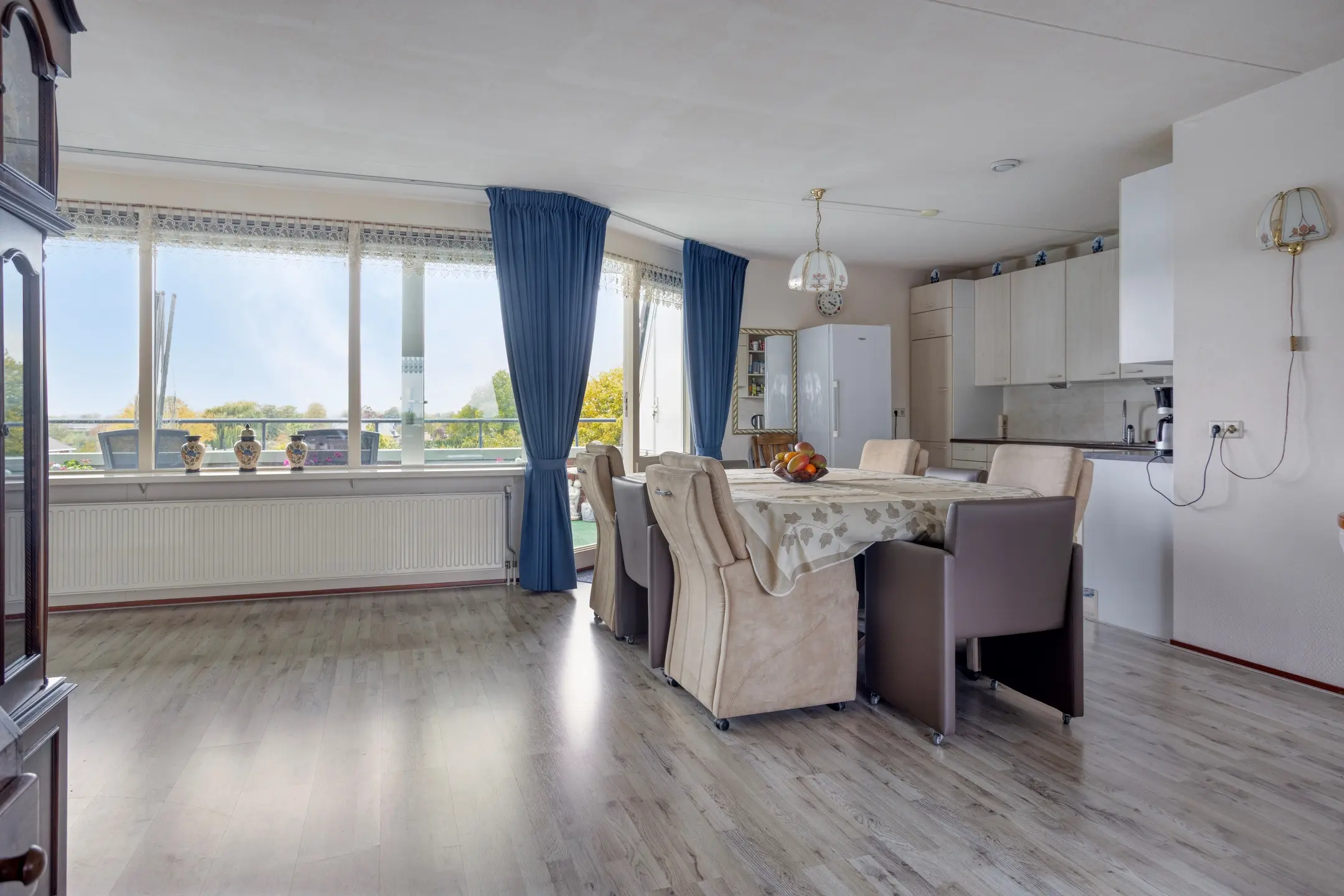 De royale woonkamer vormt het hart van de woning. Dankzij de grote raampartijen en de ligging op zowel het oosten als het westen geniet je de hele dag van zonlicht. Vanuit de woonkamer heb je toegang tot twee balkons: één op het westen voor de avondzon en een groot balkon op het oosten waar je ’s ochtends heerlijk kunt ontbijten in de zon. Vanaf hier kijk je prachtig uit over de Westerschelde, waar je de grote zeeschepen richting Antwerpen voorbij ziet varen, een uitzicht dat nooit verveelt.