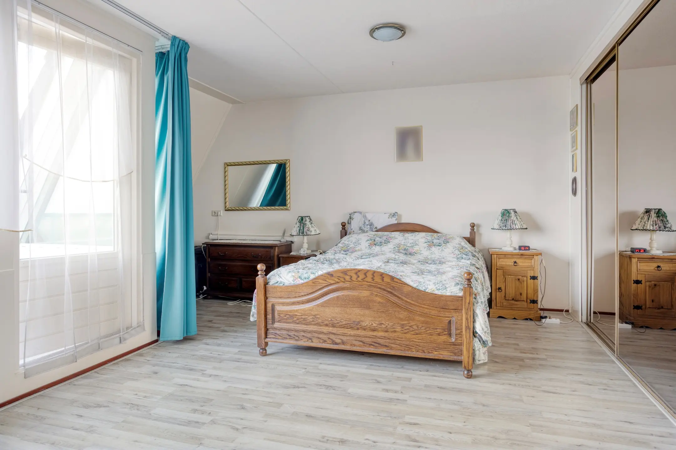 De keuken is voorzien van veel opbergruimte, waaronder een royale berging die perfect is voor extra voorraad of keukenapparatuur. Het penthouse beschikt over twee slaapkamers, waarvan de voorste kamer op het westen een eigen balkon heeft, een heerlijk plekje om te ontspannen en van de ondergaande zon te genieten. De badkamer en het aparte toilet zijn netjes afgewerkt en goed onderhouden.