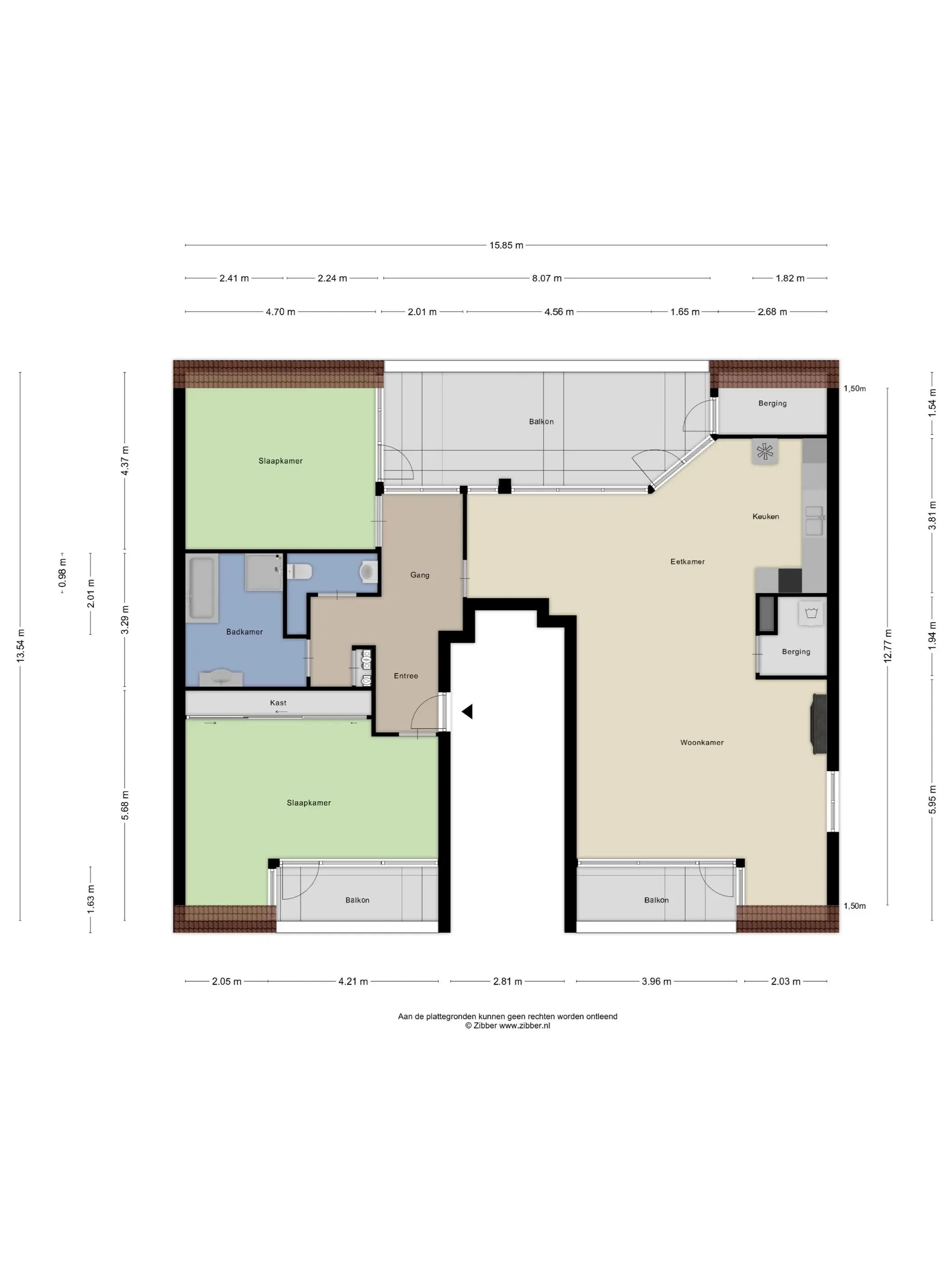 • Drie balkons (oost- en westligging)