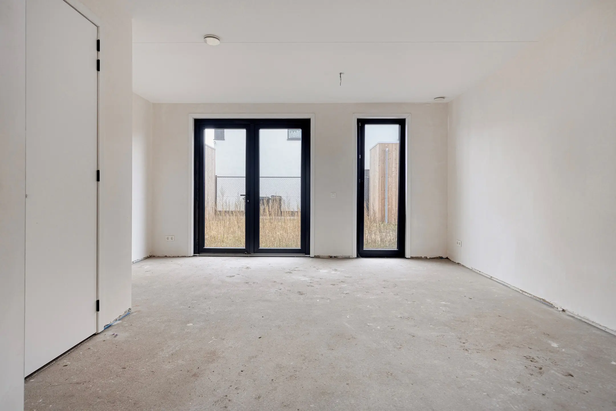 • Begane Grond: Je komt binnen in een royale hal met een ruim toilet en de trap naar boven. Vanuit hier stap je zo de heerlijk lichte en ruime woonkamer in. De openslaande deuren verbinden de kamer direct met de zonnige tuin. De woning beschikt over een royale open keukenruimte die u nog helemaal naar eigen smaak en wens kunt inrichten – de ideale basis voor uw droomkeuken!
