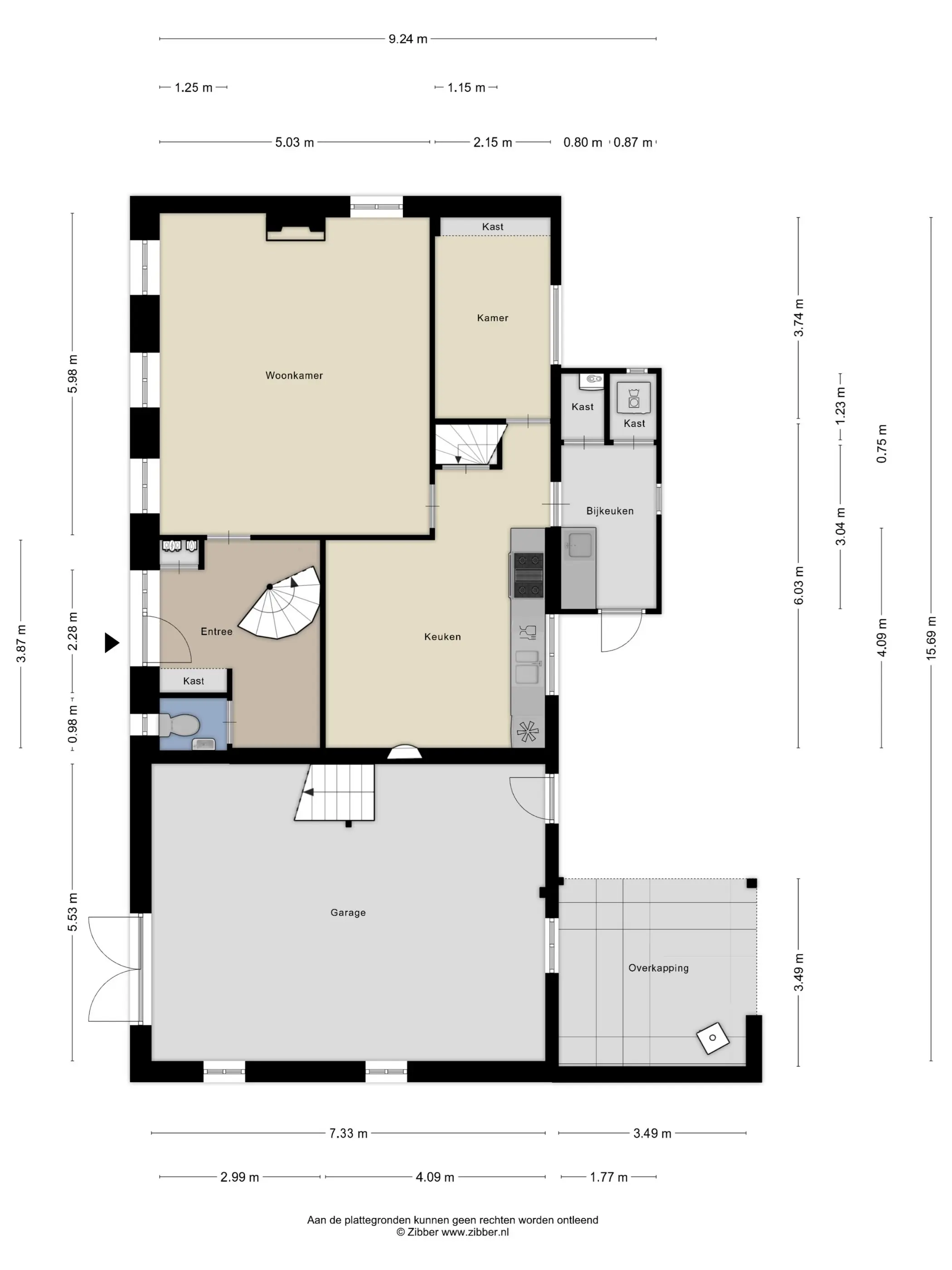 De woning heeft een ruime garage met een eigen groepenkast, een gewelfde kelder én een grote bergzolder, bereikbaar via een vaste trap.