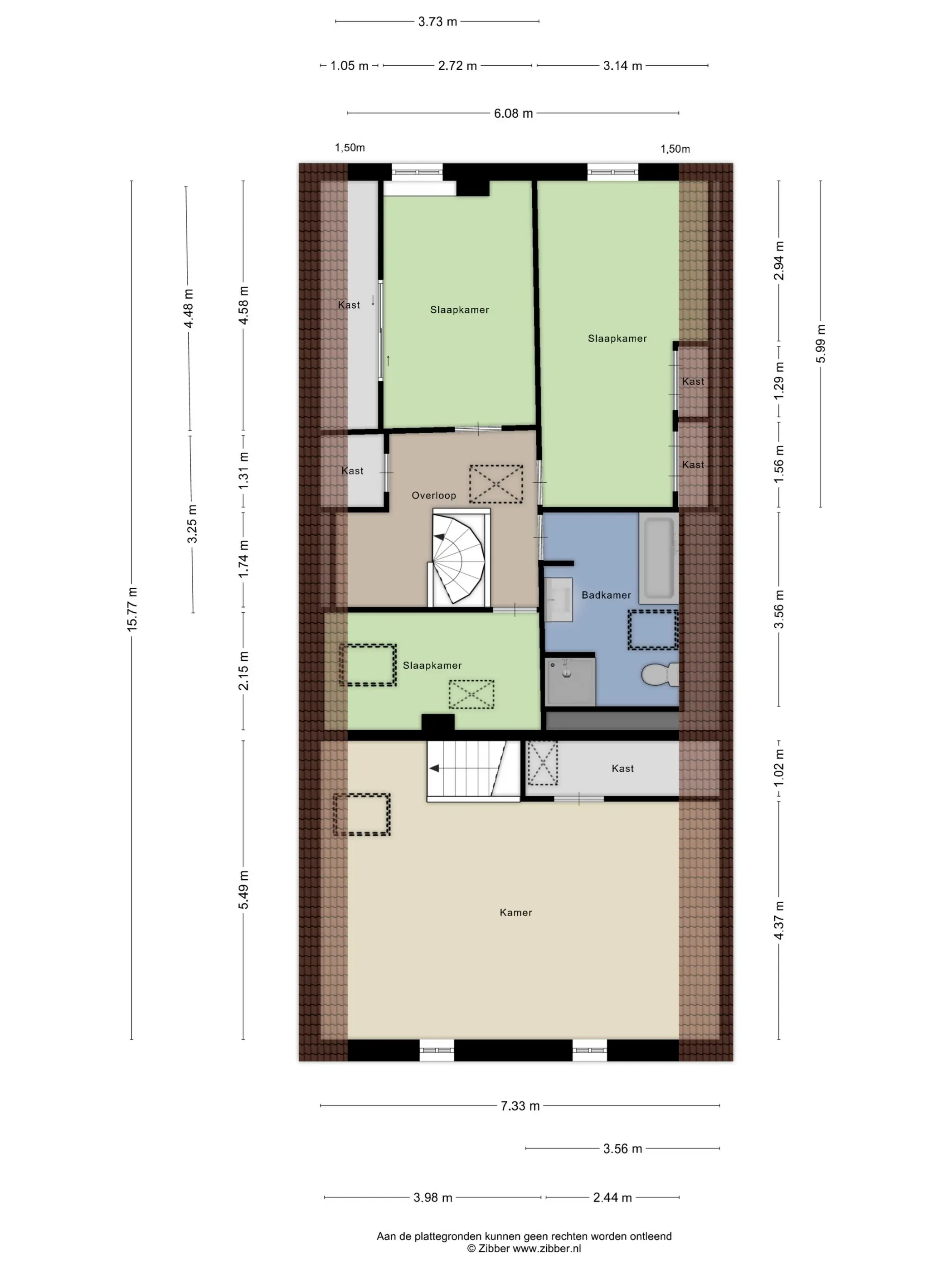 De eerste verdieping beschikt over drie ruime slaapkamers en een complete badkamer met ligbad, douche, toilet en wastafelmeubel. Het dakraam is recent vernieuwd (3 jaar oud). Via een vlizotrap bereikt u de ruime bergzolder op de tweede verdieping.
