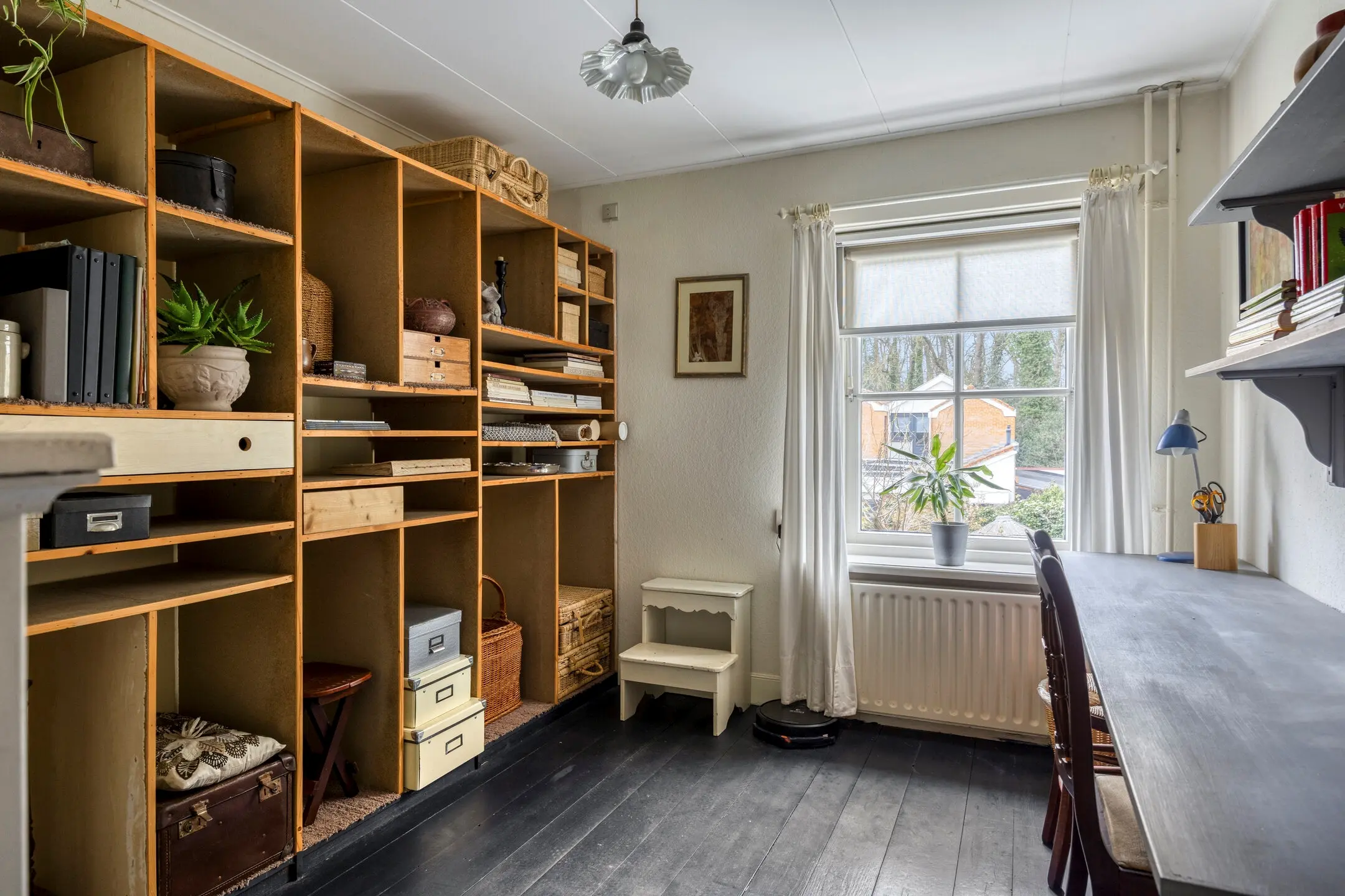 Via een vaste trap bereikt u de tweede verdieping. Hier vindt u naast een praktische berging de vierde slaapkamer, een sfeervol vertrek onder de schuine kap.