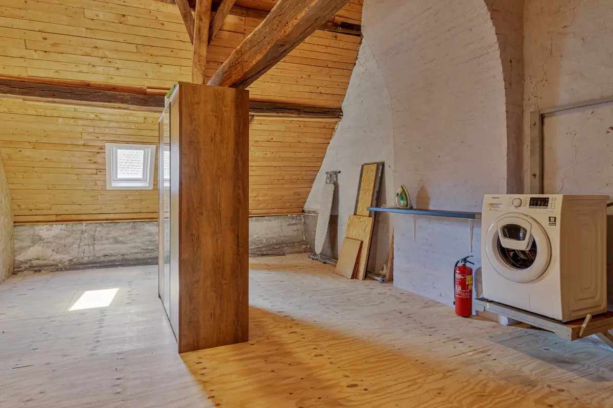 Zolderverdieping met kledingkast, nieuwe CV ketel en wasmachine.