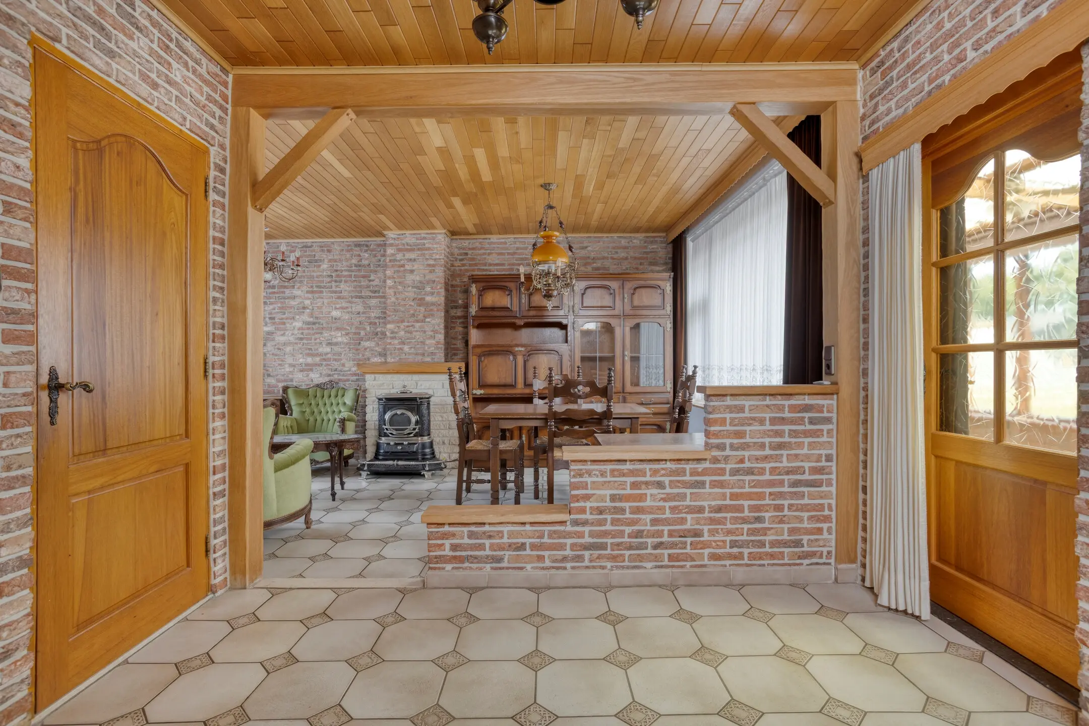 De woning beschikt over een ruime inkomhal met trapopgang naar de eerste verdieping. De lichte L-vormige woonkamer sluit aan op een sfeervolle serre, waardoor u optimaal zicht heeft op de tuin. Aan de achterzijde bevindt zich de leefkeuken met praktische achterinkom en separaat toilet.