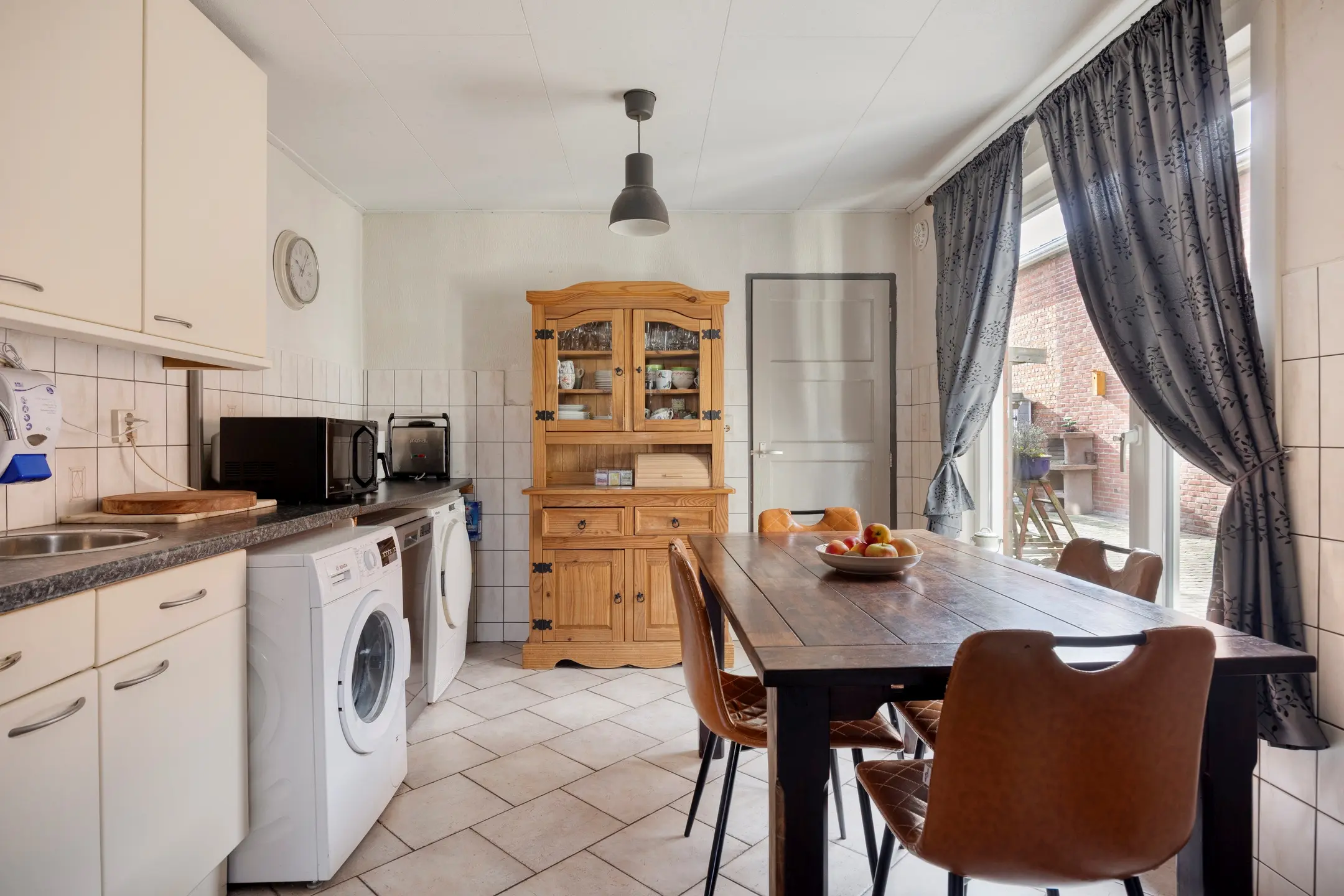 • De royale keuken is het hart van het huis, uitgerust met een 5-pits gaskookplaat en een oven. Ook de witgoedaansluitingen zijn hier praktisch weggewerkt.