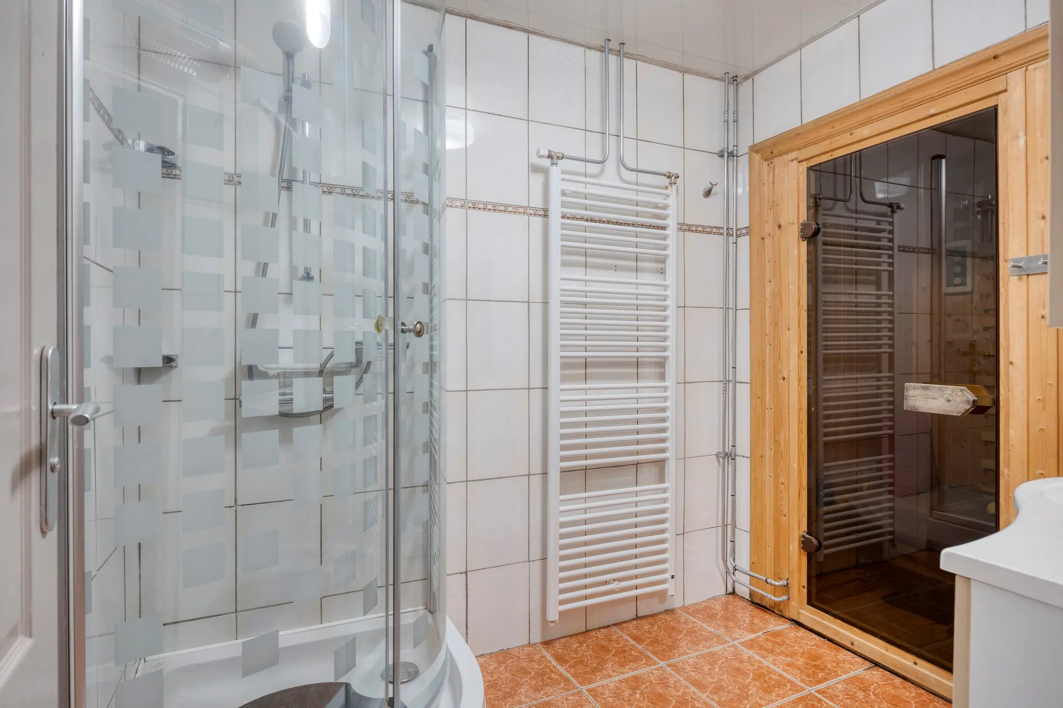• De badkamer op de begane grond is een ware wellness-plek, compleet met een heerlijke sauna om volledig tot rust te komen.