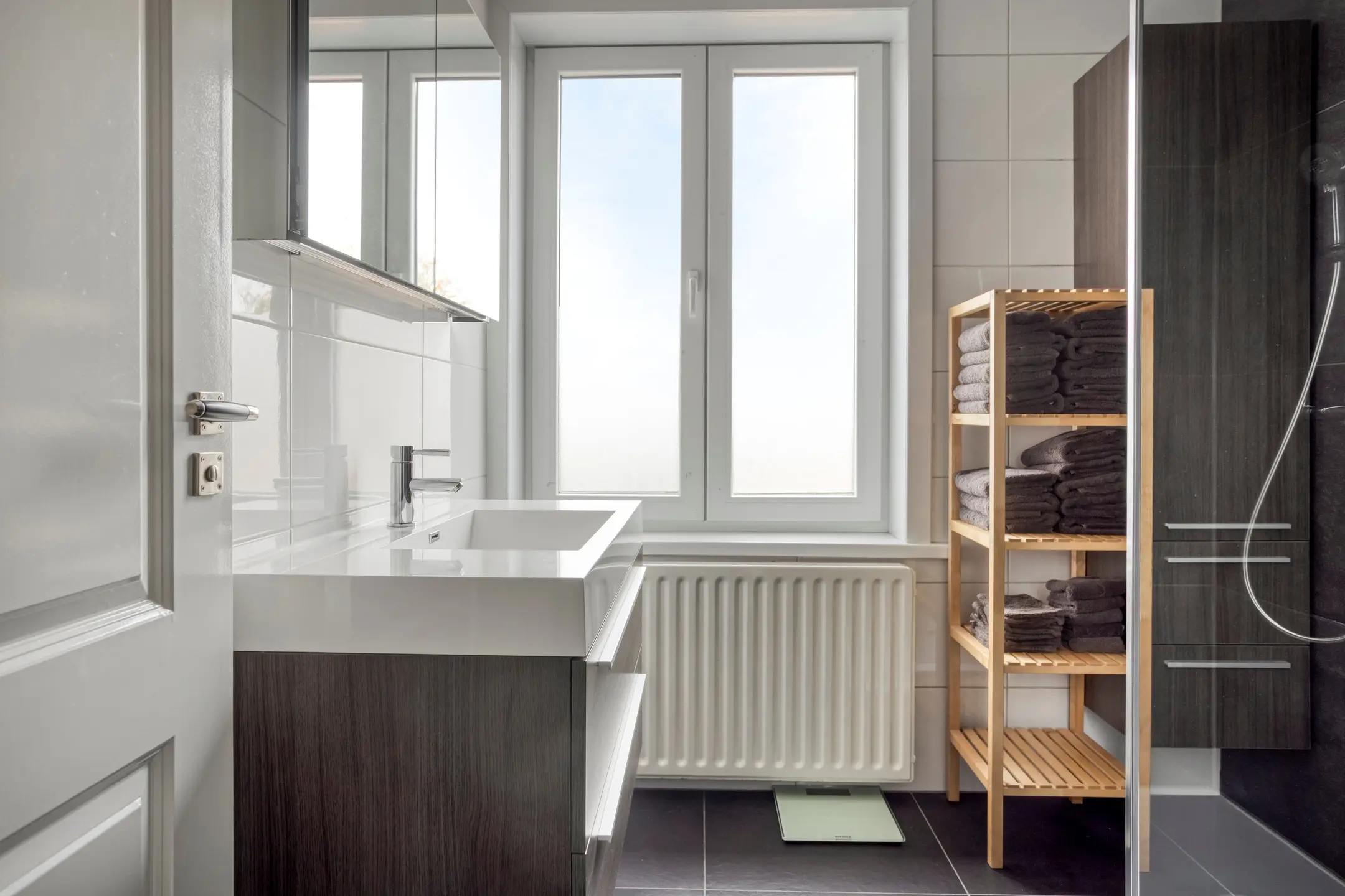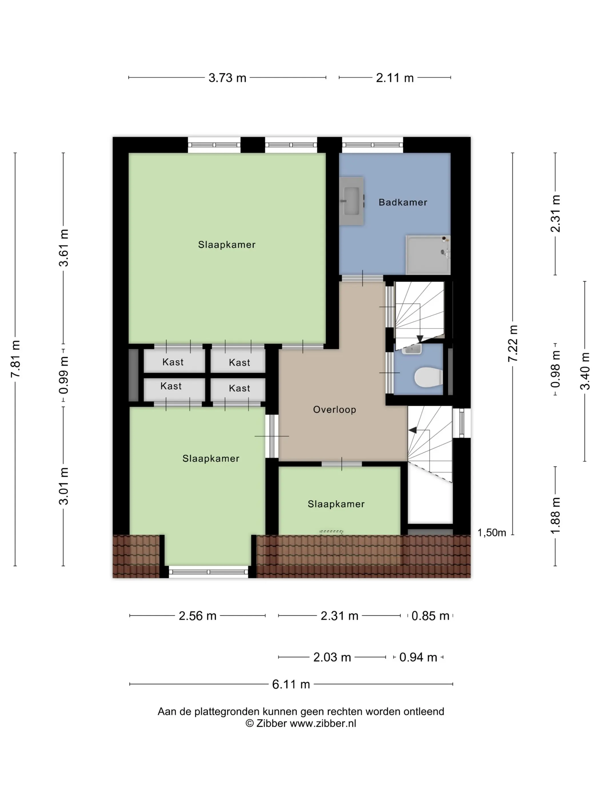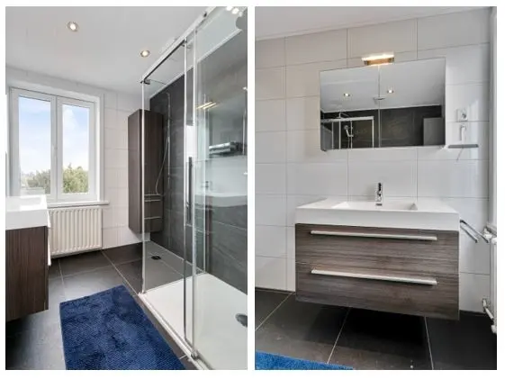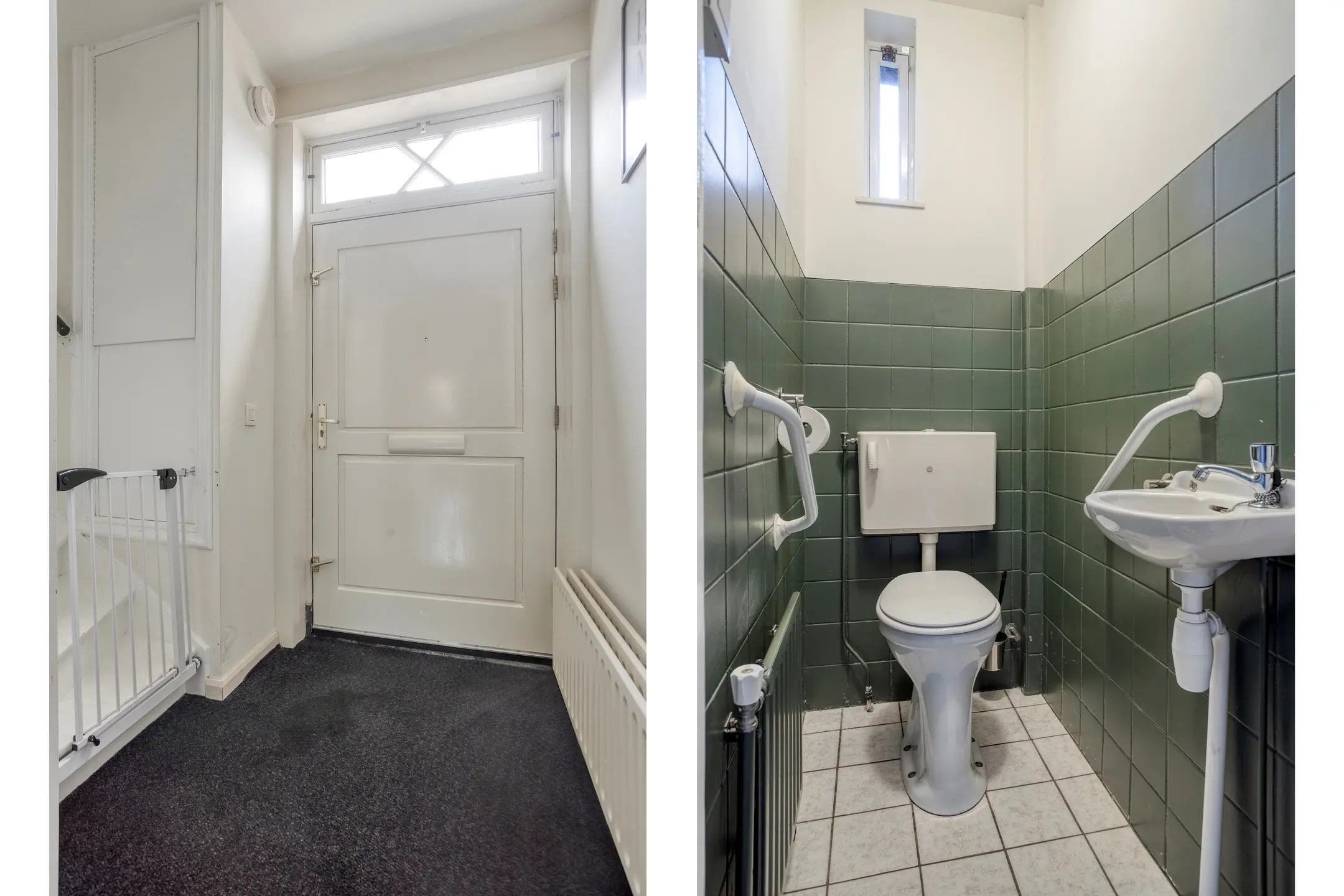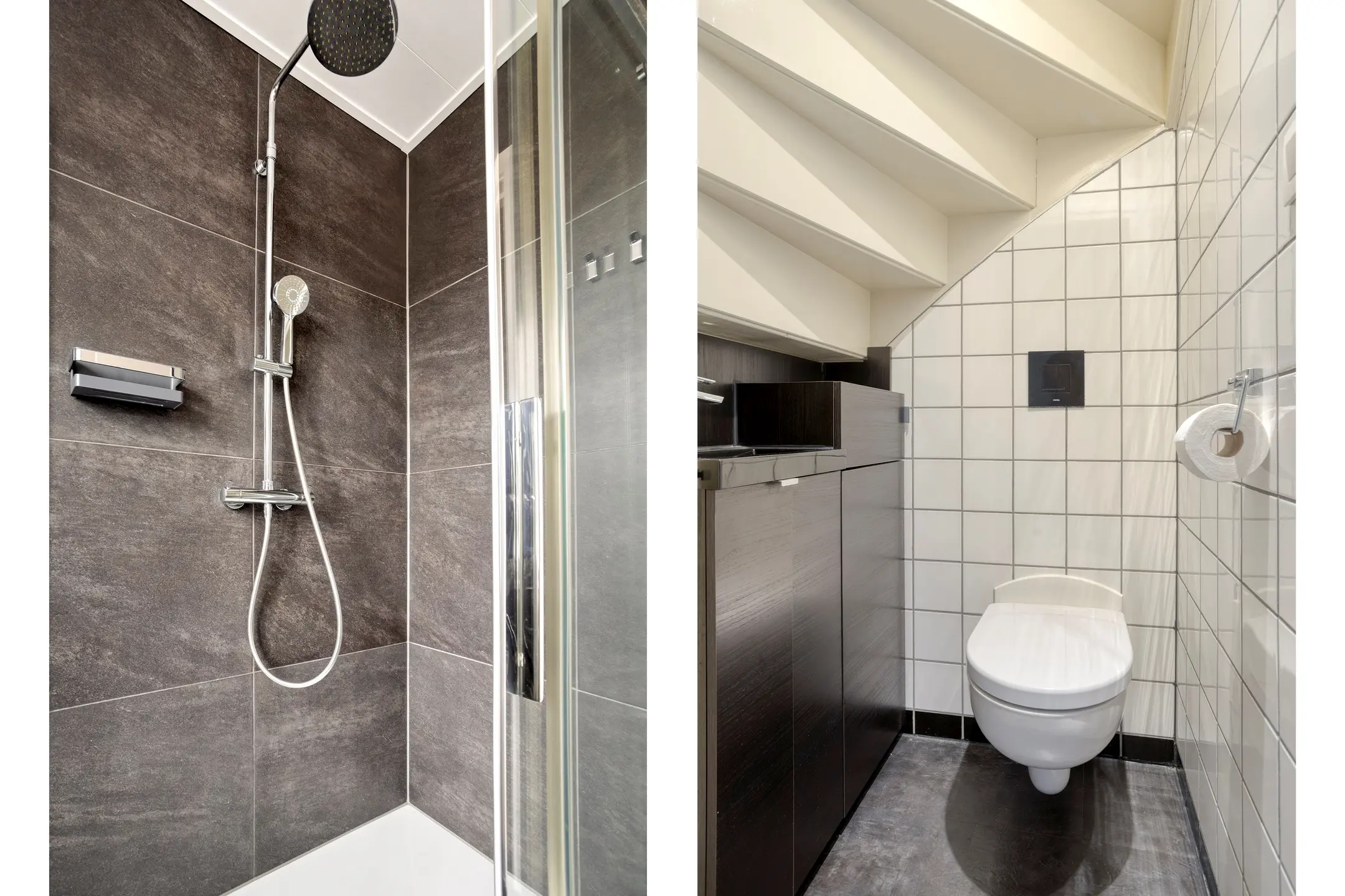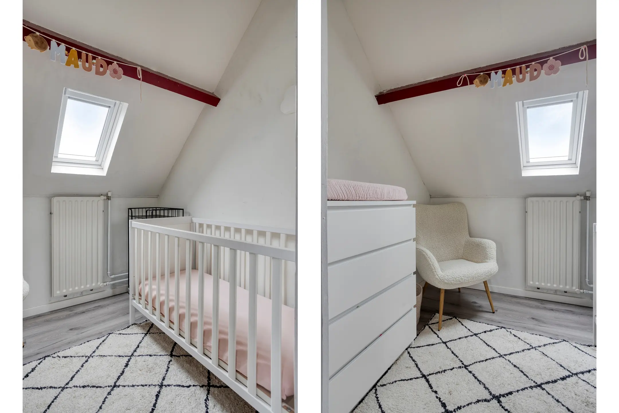Op de eerste verdieping bevinden zich twee royale slaapkamers met ingemaakte kasten, een multifunctionele inloopkast die ook kan dienen als kantoor of extra slaapkamer, en een recent vernieuwde badkamer met ruime douche en modern wastafelmeubel. Het separate toilet op de overloop verhoogt het comfort.